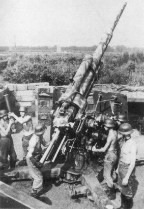 Flak 88 (słynne achtkomaacht) Conajmniej dwa takie działa brały udział w obronie Bytowa w 1945 roku. Znaleziono ich szczątki na przedpolach miasta w okolicach Dąbia i Smolarni. |