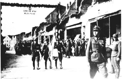 Wkraczające do Bytowa oddziały Wojska Polskiego w maju 1945 roku. |